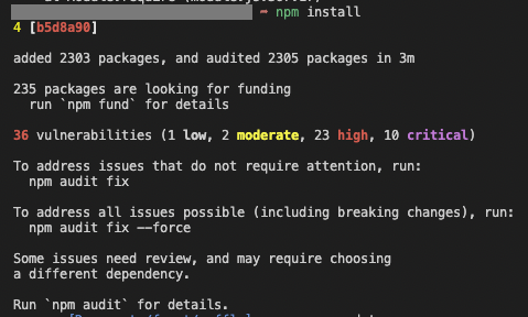 즉, node 의 디펜던시에 문제가 있어 이런 에러가 뜨는 것이다.