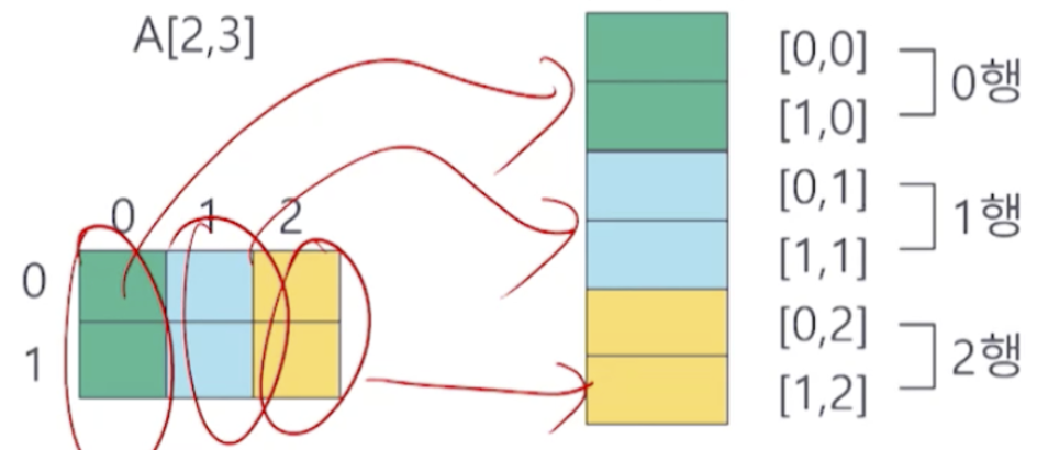 → a[i] 의 저장주소는 ⍺ + ( 𝑖 * 𝓴) 가 된다