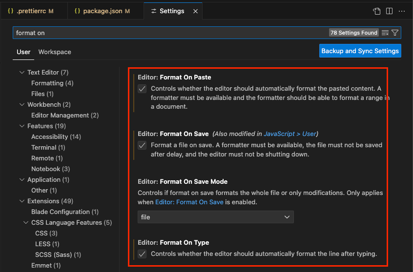 format 을 검색해서, 저장시 자동 포매팅이 되는 옵션을 enabled 해준다.