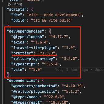 이렇게 되면 package.json 의 devDependencies 라는 개발서버 전용 디펜던시로 설치된다. 즉 로컬에서만 적용되는 셈이다.