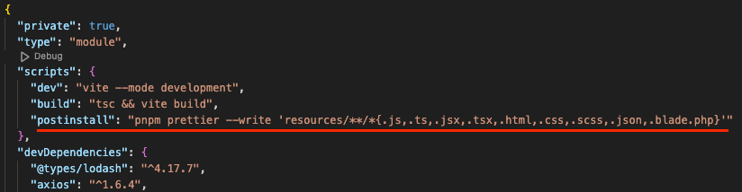 package.json 에 postinstall 로 명령어를 정의해놓으면 pnpm install 후에 package.json 을 읽으며 함께 실행되게 된다.