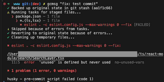 - husky 는 pre-commit 을 타이밍을 잡아낼 수 있고