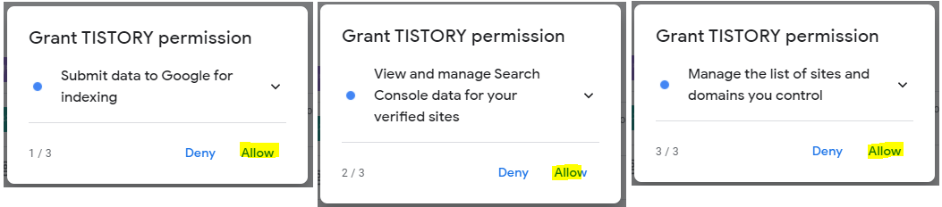 4. 순서대로 허용을 요구하는 창이 뜬다. [allow(확인)] 눌러 동의해준다.