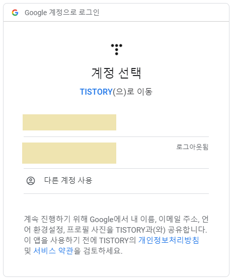 3. 구글연동로그인창이 뜬다. 사용할 계정클릭!