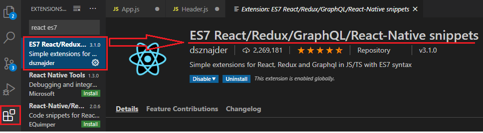 - 비주얼스튜디오의 extensions메뉴에서 스니펫을 다운받으면 일어나는 일