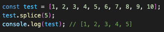 - splice 는 직접적으로 삭제, 추가, 교체한 원본 배열을 리턴한다. (삭제 교체 추가 가능)
