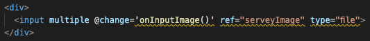 그리고 @change 이벤트를 만들어주자 (업로드된 파일이 데이터배열인 input에 담길것이다.)