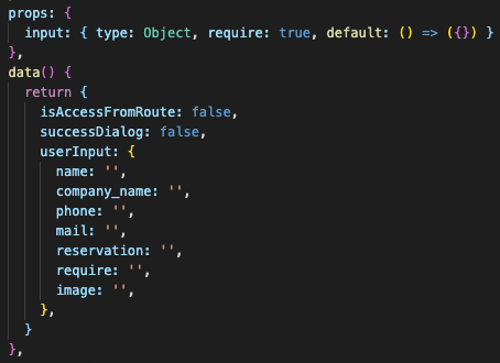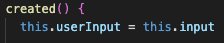 data() 에는 userInput 을 선언한다. input 객체와 내용은 똑같지만 비어있다.
