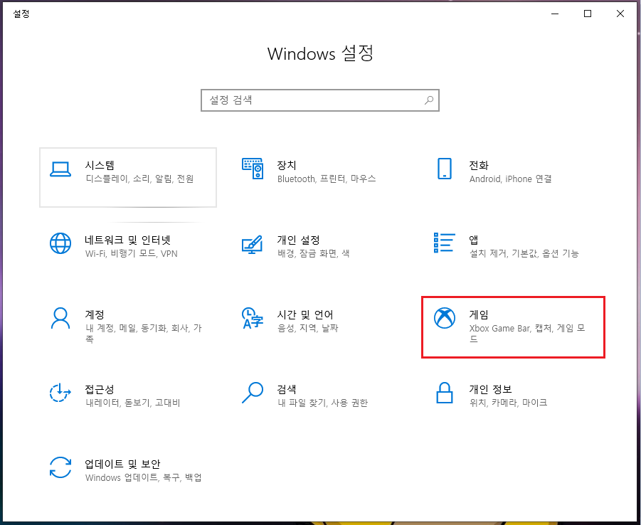 1. 시작 - 설정 - 게임 까지 들어온다.